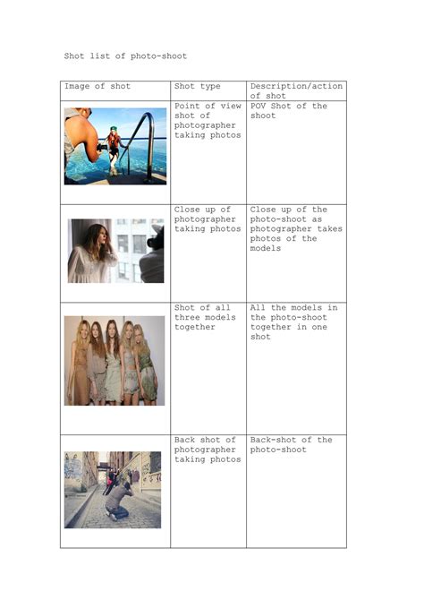 shot list example photoshoot. There are any references about shot list example photoshoot in here. you can look below.