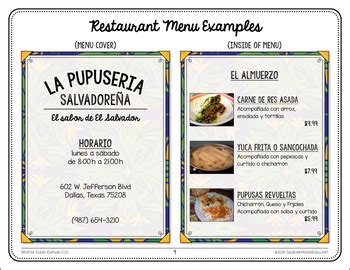 spanish menu project examples pdf