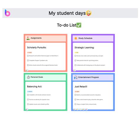 to do list examples for students